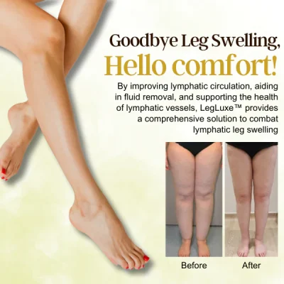 LegLuxe™ employs a multifaceted approach to address lymphatic leg swelling at its root. By stimulating and supporting the lymphatic system’s function, it enhances lymphatic circulation and facilitates the removal of accumulated fluids, waste products, and toxins from the legs. Through its innovative formula, LegLuxe™ aids in reducing fluid retention and restoring fluid balance, thus alleviating leg swelling.