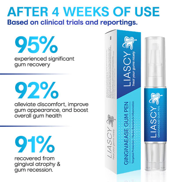 Liascy™ GingivaEase Gum Pen is specially designed to target gingival atrophy and gum recession, offering a comprehensive solution for gum health restoration. Enriched with a unique blend of natural ingredients and scientifically proven compounds, this advanced pen provides a soothing and rejuvenating experience for your gums. Say goodbye to discomfort and hello to a healthier, more vibrant smile withLiascy™ GingivaEase Gum Pen.