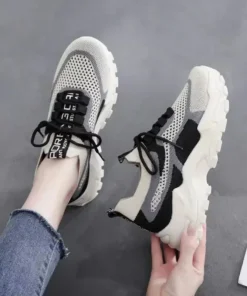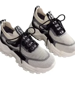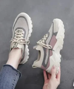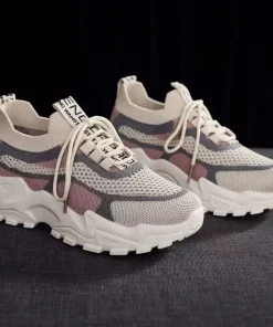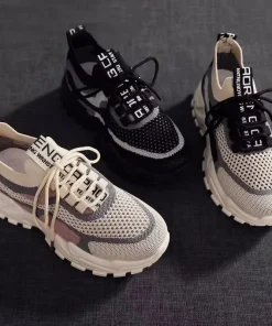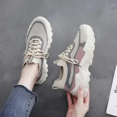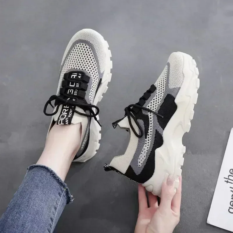 2024 New Fly Woven Mesh Casual Breathable Sneakers Korean Style Thick-Soled Daddy Shoes Mesh Red Shoes Light Running Shoes