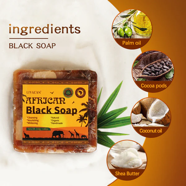 LIYALAN Black Soap heals the skin by reducing inflammation and clearing scales.
