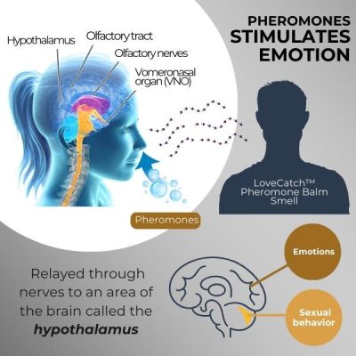 LoveCatch™ Pheromone Balm releases subconscious scent signals that leave a lasting impression on the opposite sex, igniting powerful sexual responses. These signals are detected through the Vomeronasal Organ (VNO) inside the nose, which sends sexual response signals to the brain’s limbic region, controlling emotions and desires.