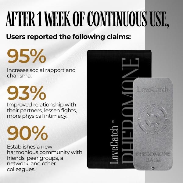 LoveCatch™ Pheromone Balm is a scientifically crafted formula that enhances attraction, boosts confidence, and leaves a captivating scent, making you irresistibly alluring to those around you. Imagine stepping into a room and feeling an invisible magnetic pull drawing everyone’s attention towards you. Picture your crush unable to resist your charm, hanging onto your every word. This isn’t just a fantasy; it’s the transformative power of LoveCatch™ Pheromone Balm in action.