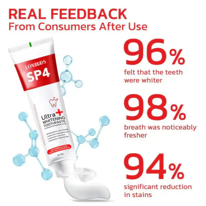 This promotional copy for LOVILDS™ SP-4 Probiotic Ultra Whitening Toothpaste is highly detailed and comprehensive, presenting the product’s benefits, features, customer testimonials, and a limited-time promotion. However, it could be made more concise, impactful, and user-friendly by refining the text.