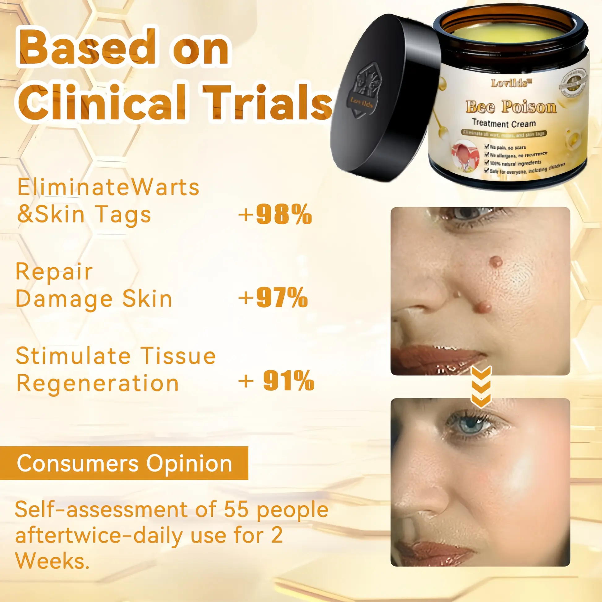 Transform your skin and regain your confidence with Lovilds™ Bee Poison Skin Treatment Cream. Say goodbye to moles, warts, skin tags, and blemishes—order now and experience the power of nature in skin care!