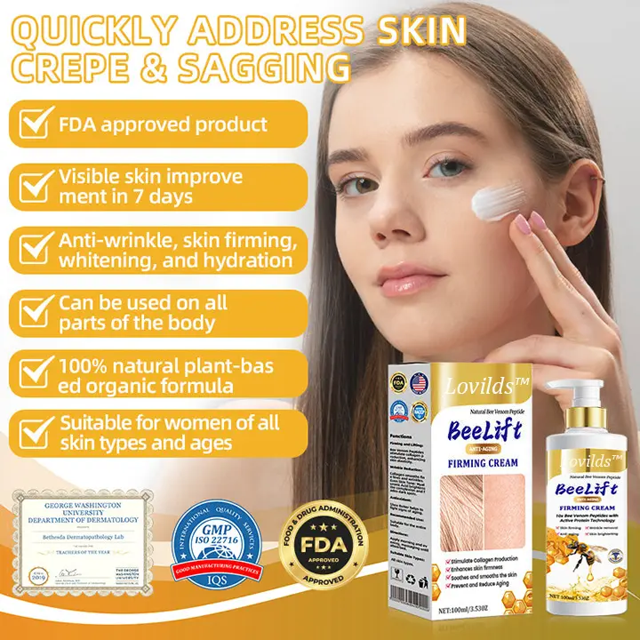 As we age, our skin naturally loses elasticity and collagen production slows down. Lovilds™ BeeLift Anti-Aging Firming Cream uses bee venom peptides to stimulate collagen production, boosting skin elasticity and reducing the appearance of wrinkles. These peptides also have powerful antioxidant properties that help protect the skin and keep it youthful.