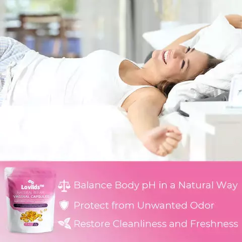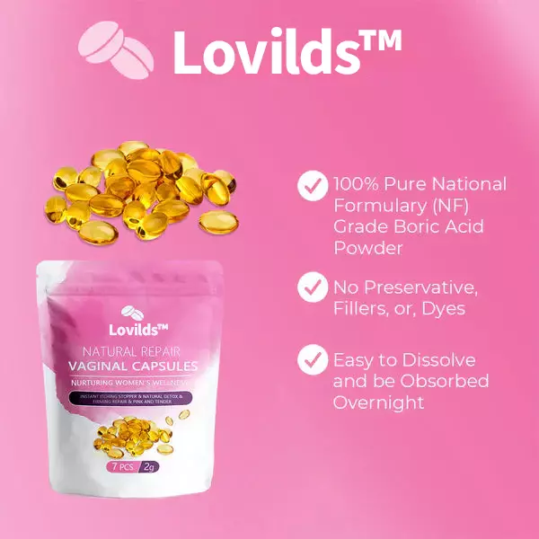 It seems like you’re showcasing a product, the LOVILDS™ Natural Repair Vaginal Capsules, which is marketed as a solution for various feminine health concerns, including vaginal dryness, tightness, odor, and gynecological issues like bacterial vaginosis, menstrual irregularities, and more. The product claims to use a combination of natural ingredients to support vaginal health, improve firmness, and enhance libido, with results reported within a few weeks of use.