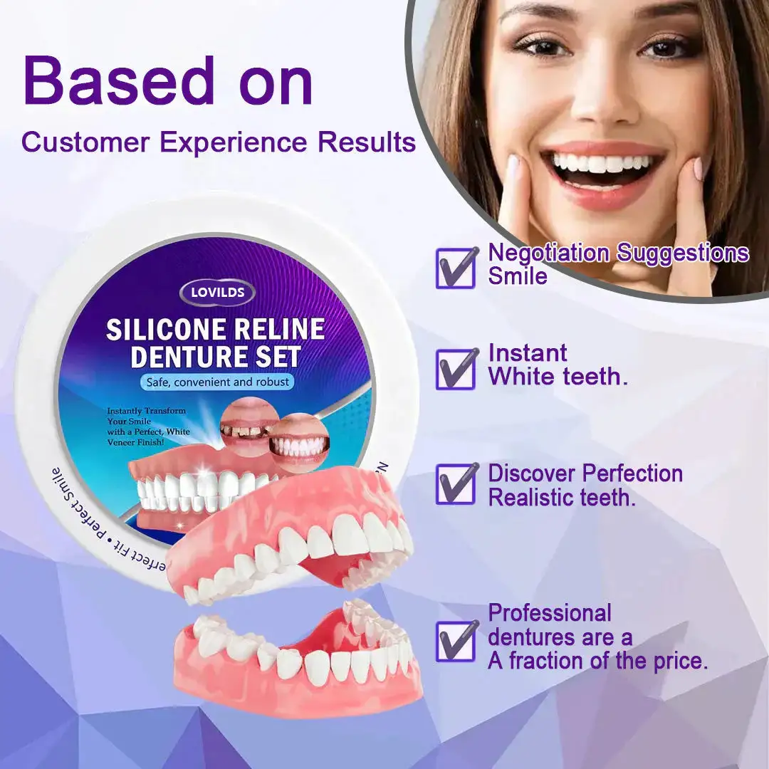 Welcome to LOVILDS™ Silicone Reline Denture Set, where cutting-edge dental innovation meets affordability. Our product offers professional-grade dentures that look and feel just like the real thing, but without the hefty price tag. Transform your smile and regain your confidence with our easy-to-use, high-quality denture set.