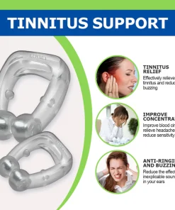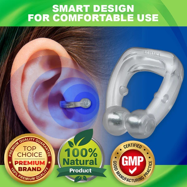 The LUHAKA™ AcuPeace Tinnitus Relief Device is designed to be easily molded to fit the Auditory Palace (SI19) and gently hold the tragus during sleep using fully adjustable clips. This technique utilizes magnetic therapy and gentle pressure to help reduce pressure in the jaw and ears, alleviating conditions such as ringing in the ears, infected ears, ear pain, tension headaches, and migraines.
