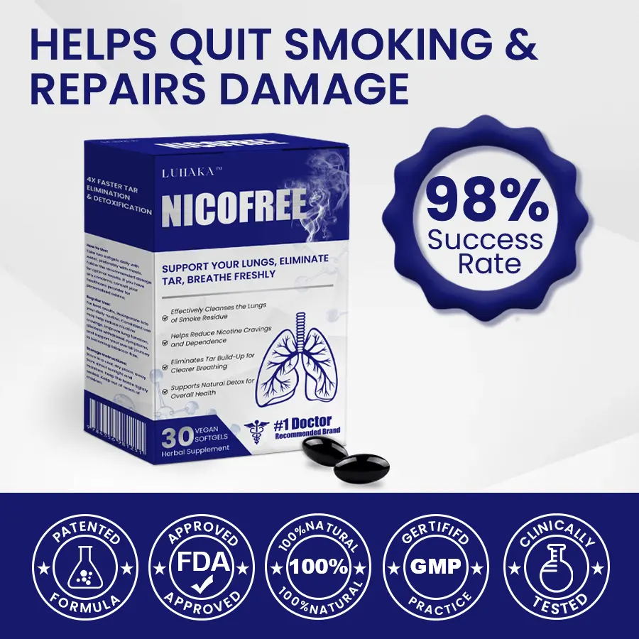 ★★★★★ “Breaking free from smoking with Luhaka™ Nicofree has been life-changing. My lungs feel revitalized, and the chest tightness I once felt is completely gone. These softgels are a real breakthrough!” – James Carter