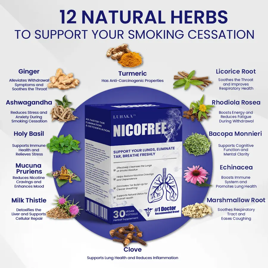 By addressing the root causes of nicotine addiction, Luhaka™ Nicofree aids in restoring lung health, enhancing respiratory function, and lowering the long-term risks associated with smoking. Take charge of your well-being today, break free from cigarettes, and enjoy a healthier, smoke-free future.