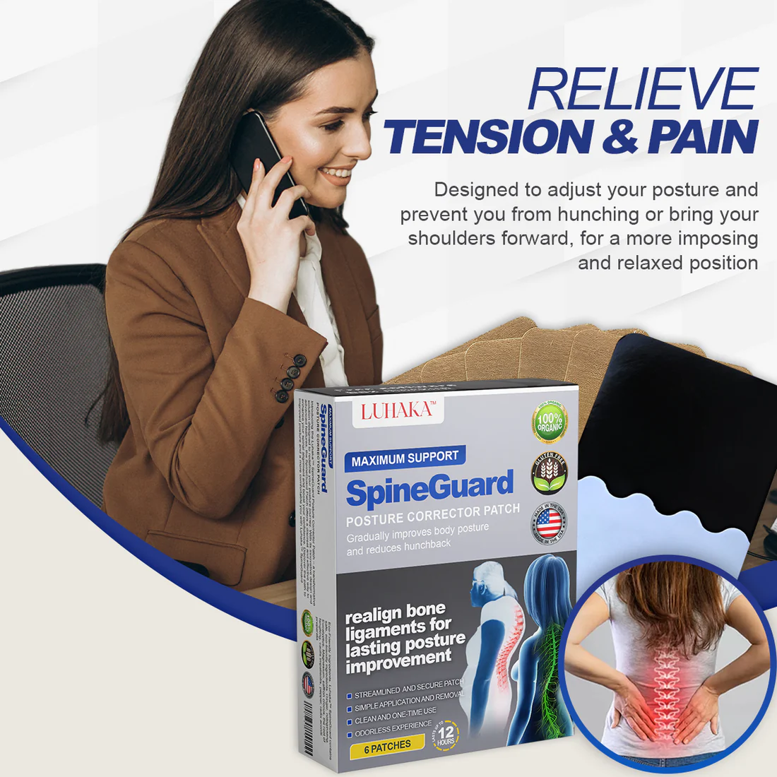 Luhaka™ SpineGuard Posture Corrector Patch has the following product features: