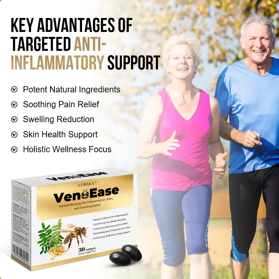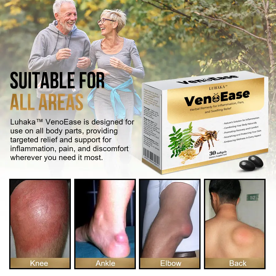 Luhaka™ VenoEase is a natural supplement designed to reduce pain, swelling, and inflammation in joints and muscles, using powerful, plant-based ingredients to support overall comfort and mobility. - How does Luhaka™ VenoEase work?