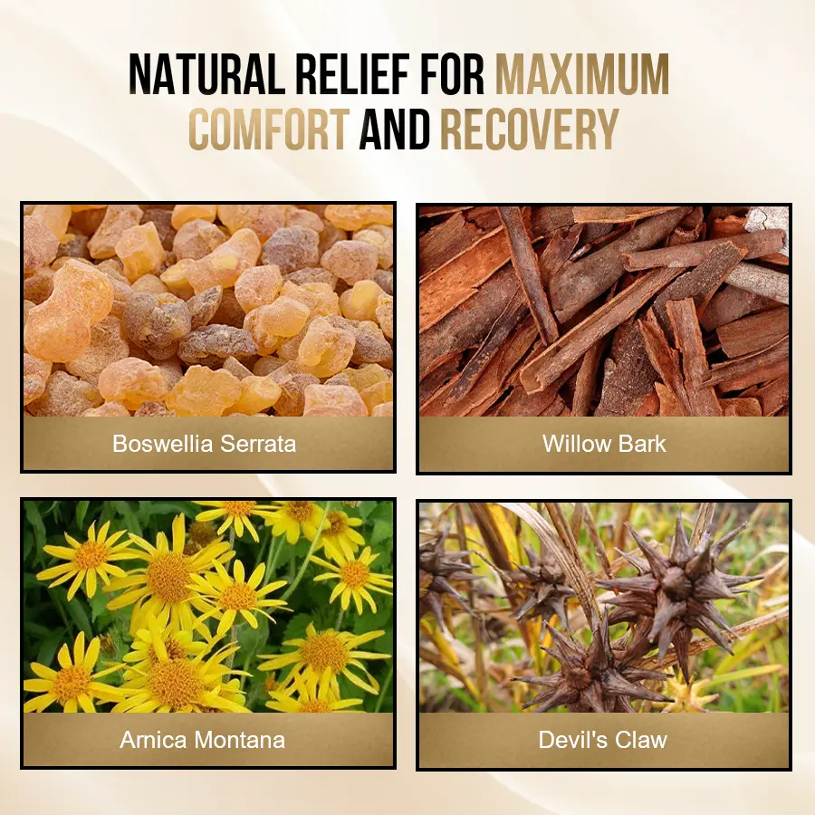 It combines anti-inflammatory ingredients that reduce swelling and pain. By enhancing circulation and soothing inflammation, it improves joint flexibility and mobility. - What are the key ingredients?
