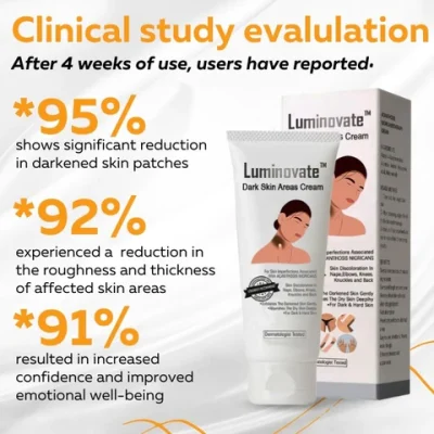 The purpose of Luminovate™ Dark Skin Areas Cream is to improve the appearance of the damaged skin. By exfoliating the skin and encouraging cell turnover, this can reduce the thickness and darkness of the affected skin. Every body part, even the most private and sensitive ones, such as the neck, lips, underarm/armpit,bikini area, knees, and elbows, can be applied.