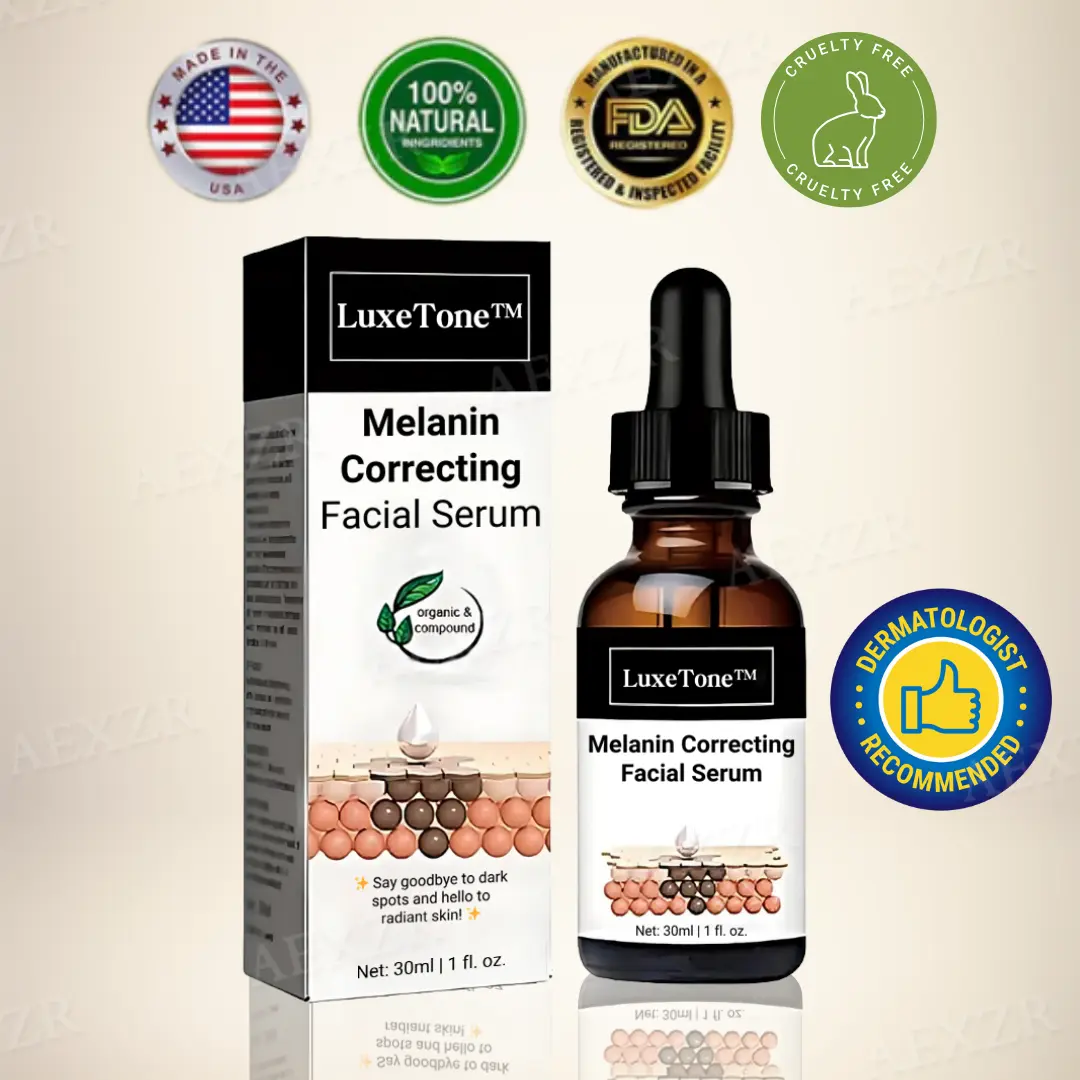 LuxeTone™ Melanin Correcting Facial Serum is specially formulated to target hyperpigmentation at its source by inhibiting excess melanin production. Over time, factors such as sun exposure, hormonal changes, and environmental stress can cause dark spots, melasma, and uneven skin tone. LuxeTone™ works by breaking down existing pigmentation clusters while preventing new discoloration, gradually restoring a clear and even complexion. Its advanced brightening compounds penetrate deep into the skin, fading stubborn dark spots and dull areas without causing irritation. Unlike harsh treatments, LuxeTone™ offers a safe and effective solution suitable for all skin types, including sensitive skin.