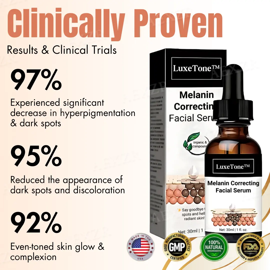 Effortlessly brighten and rejuvenate your skin with LuxeTone™ Melanin Correcting Facial Serum—a powerful, safe, and trusted solution for a clearer, more radiant complexion, loved by thousands!