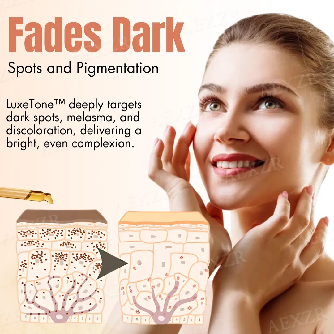 Powered by advanced brightening compounds and skin-renewing ingredients, LuxeTone™ targets the root cause of pigmentation, effectively fading dark spots, evening out skin tone, and unveiling a healthy, luminous glow. Its lightweight, non-greasy formula absorbs quickly, delivering deep hydration while strengthening the skin barrier to prevent future discoloration. Suitable for all skin types, including sensitive skin, LuxeTone™ not only reduces hyperpigmentation and sunspots but also promotes collagen production, enhancing skin elasticity and firmness. With consistent use, it revitalizes your complexion—helping you achieve clear, radiant skin without harsh treatments or expensive procedures.