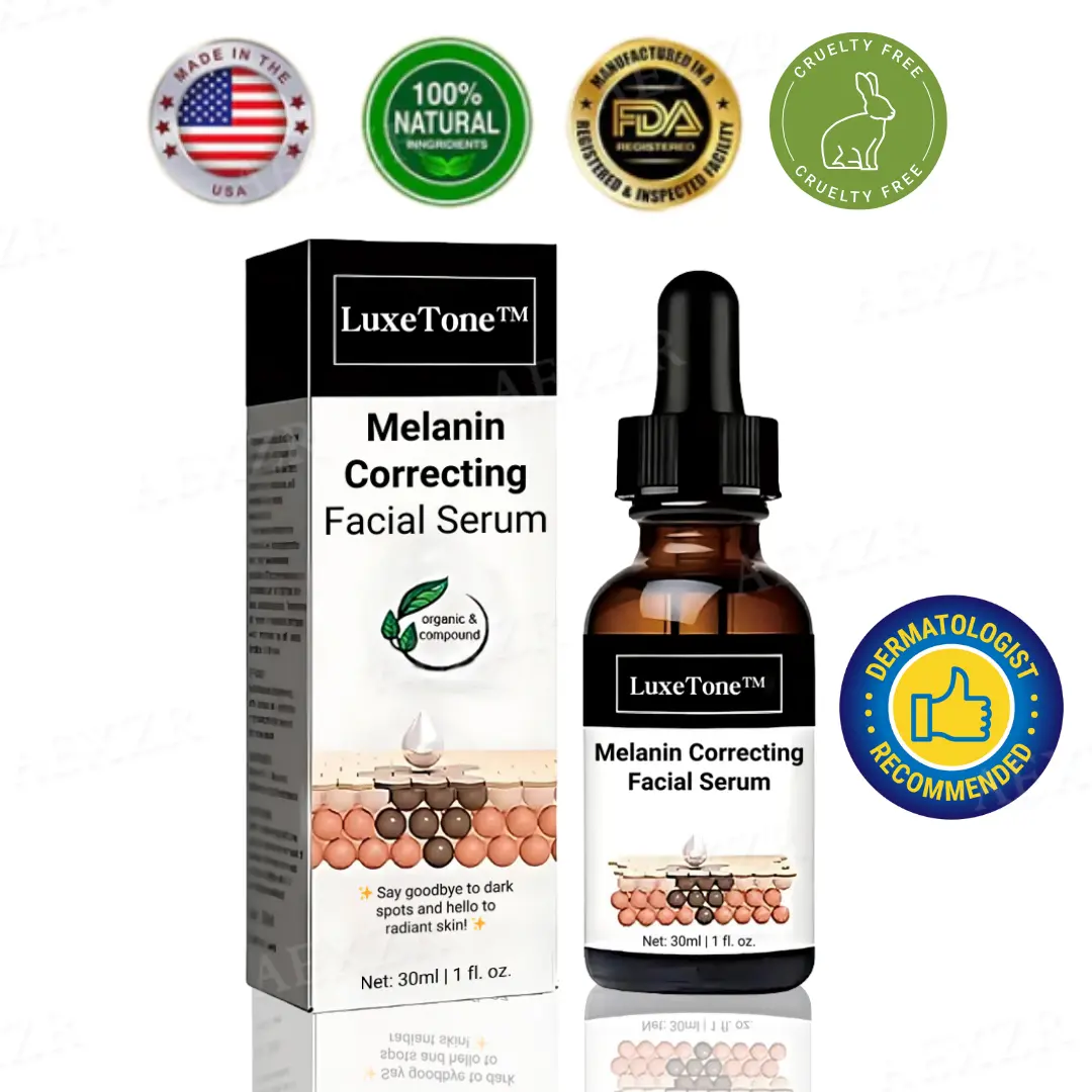 LuxeTone™ Melanin Correcting Facial Serum is formulated with powerful skin-brightening ingredients, clinically proven to fade dark spots, reduce hyperpigmentation, and restore an even complexion. Its advanced formula targets discoloration at the source, helping to diminish stubborn pigmentation while promoting collagen production for firmer, smoother skin.