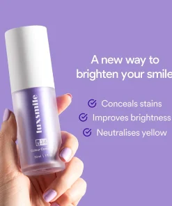 Purple is directly opposite yellow on the colour wheel and is therefore its complementary colour, so a water-soluble purple dye is applied to your teeth to cancel out any yellow undertones. V34 is best used as a post whitening treatment, however it can be used on its own daily or before an event, to eliminate unwanted yellow undertones on your teeth. Luxsmile™ V34 Colour Corrector Serum!