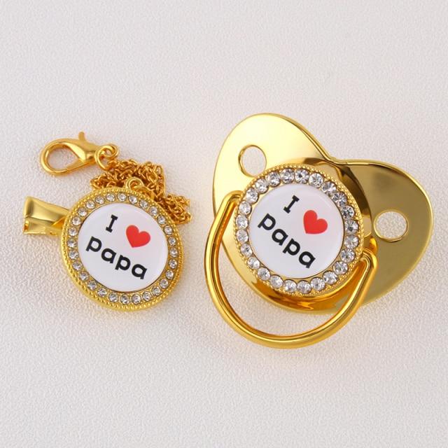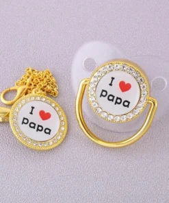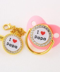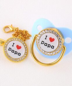 The Orthodontic pacifier designed for natural oral development, respects the natural development of baby’s teeth and gums. Our limited collection of “I Love Papa” will bring a smile to all Fathers! It also comes with gold color pacifier chain to hold the Luxury Baby Pacifier in place.
