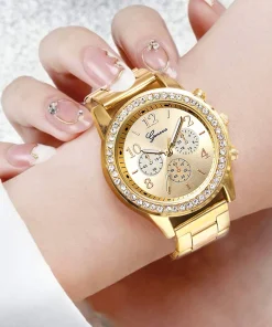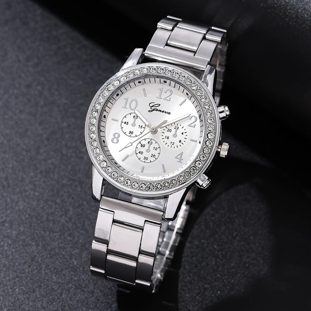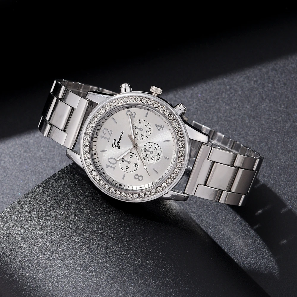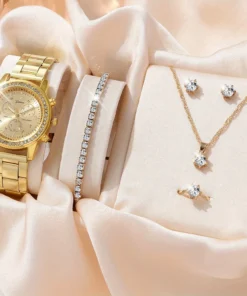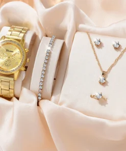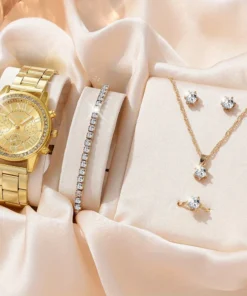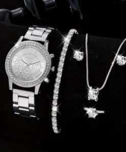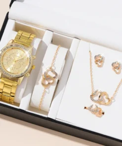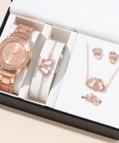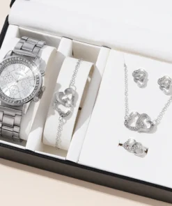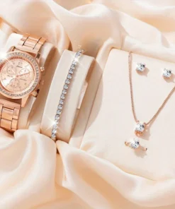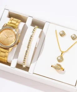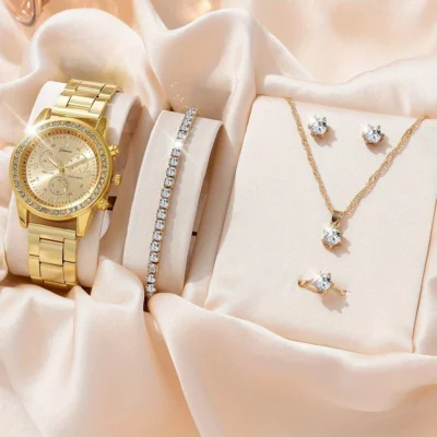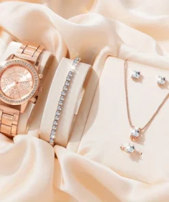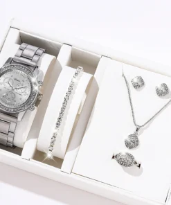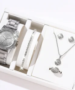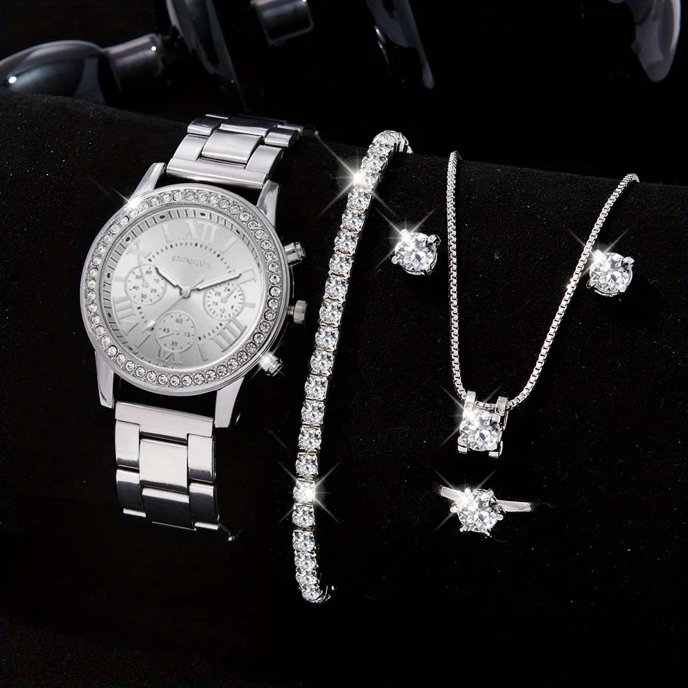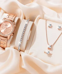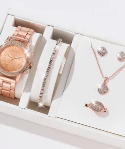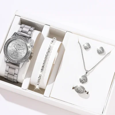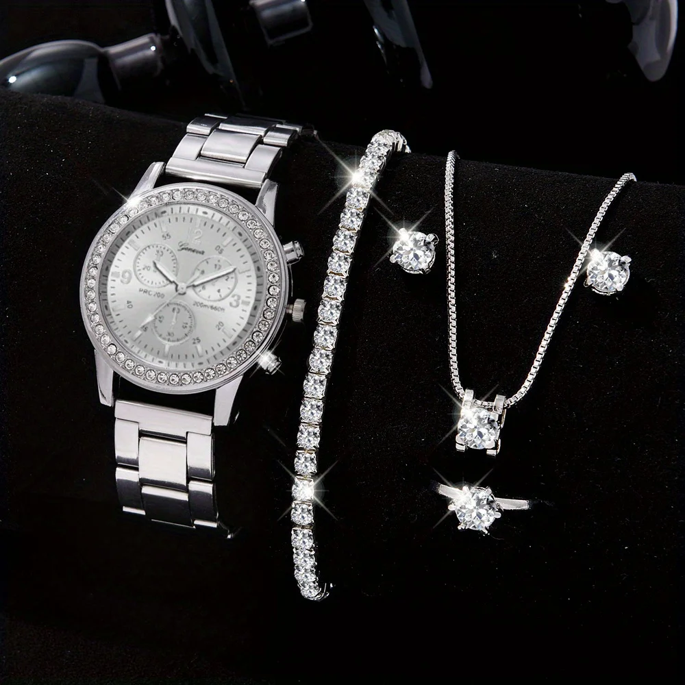 6PCS Set Luxury Watch Women Ring Necklace Earrings Rhinestone Fashion Wristwatch Female Casual Ladies Watches Bracelet Set Clock