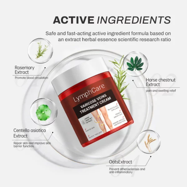 The LymphCare VaricoseVeins Treatment Cream combines science with natural ingredients to make its formula work faster and safer than similar products on the market.