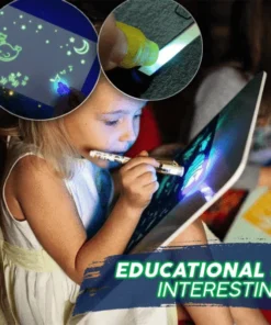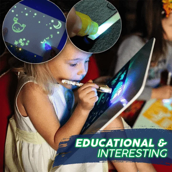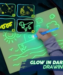 - Turn on the included LED glow pens, and start drawing or writing on the board surface.