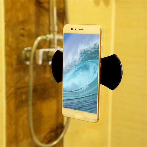 The adhesive is heavy duty, and having multiple in a pack is awesome. I took the pic by sticking it to my bare phone and attaching it to the mirror! No residue left behind, veryyyy strong