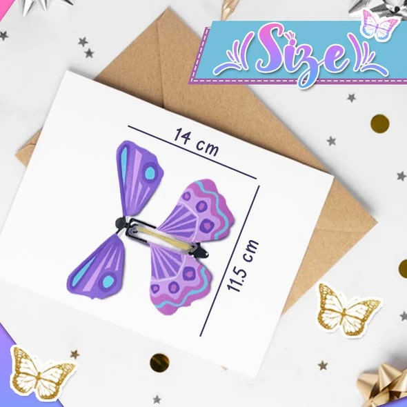 If you want to surprise your loves💟, this Magic Fly Butterfly is your first choice. It is a wind up butterfly toy that applies rubber band to power its amazing flight! ✨