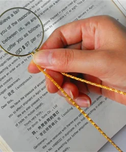 - 5x 1-3/4″ Glass Lens Necklace Magnifier w/ 36″ Gold or Silver Plated Chain