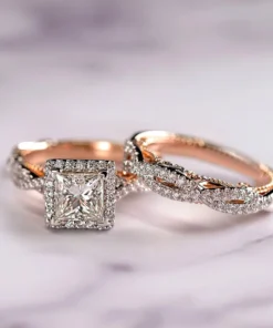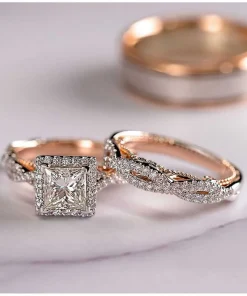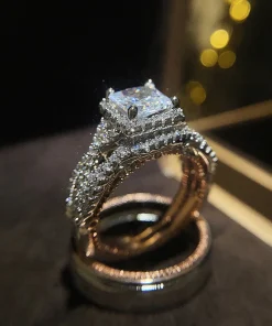 Huitan Luxury Princess Cut Cubic Zircon Bridal Marriage Rings Elegant Accessories Brilliant Women Men Wedding Trendy Jewelry