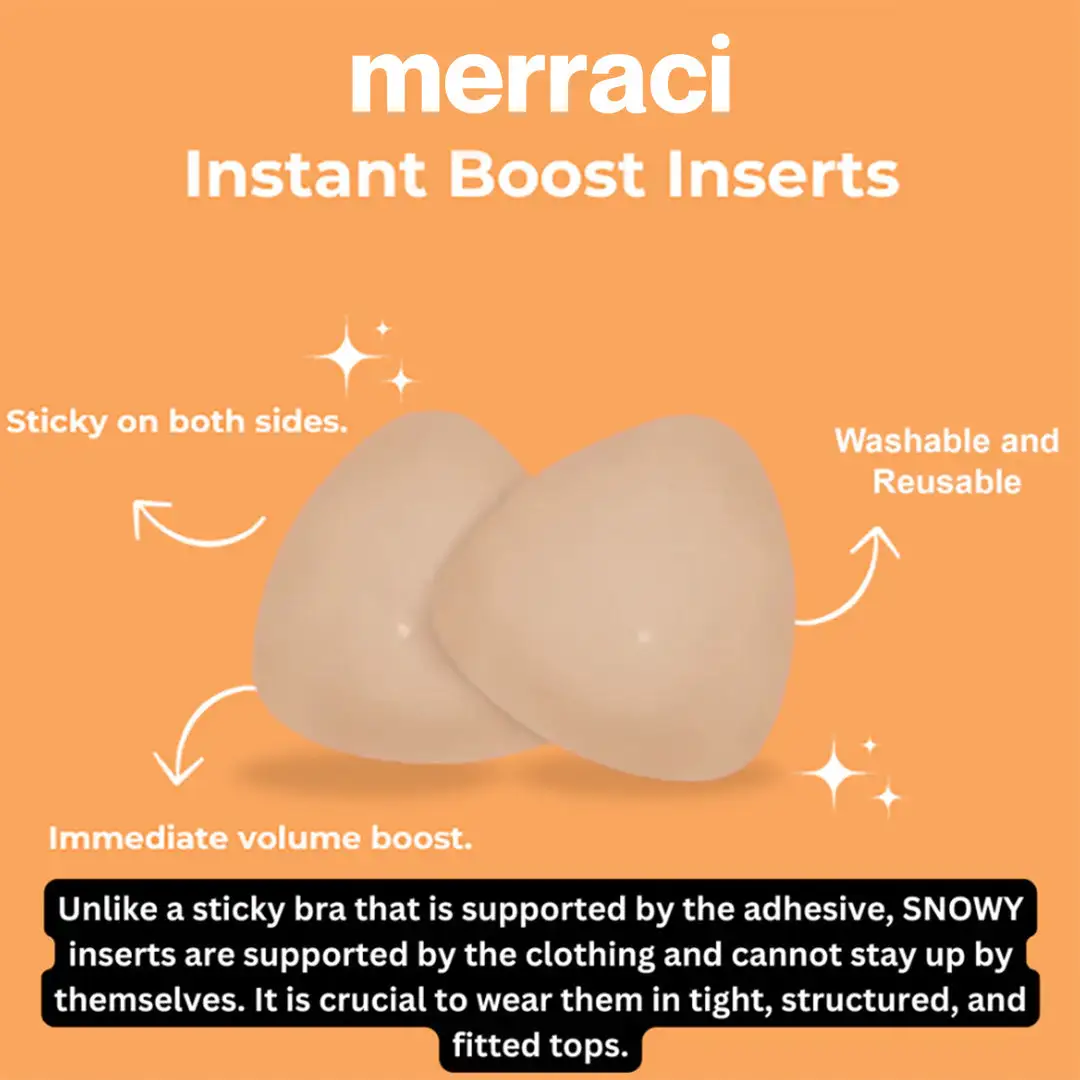Instant Boost Sticky Inserts will lift your breast, make them appear Fullerand Perky. They’re for all breast size, whether you’re looking to boost yourcup size or just want to lift the girlies. lt is crucial to wear them in tight.structured, and fitted tops.