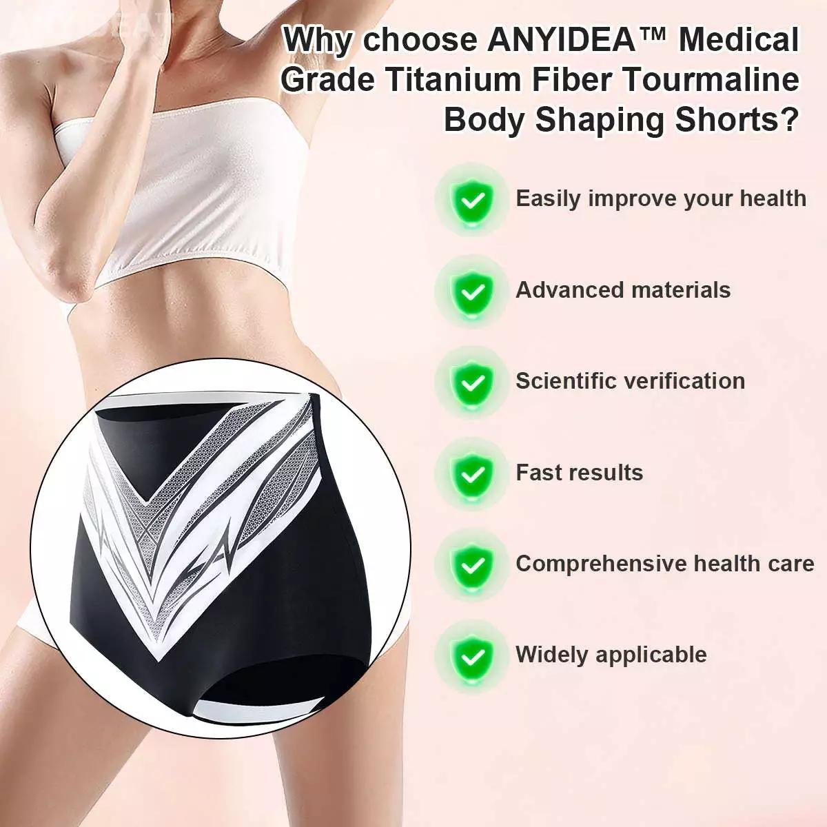 This promotional offer for Anyidea™ Medical Grade Titanium Fiber Self-heating Tourmaline Shaping Shorts sounds like a compelling deal for potential customers! It combines a significant discount with a free gift (La Mer Moisturizing Cream), and highlights a variety of benefits of the product, including: