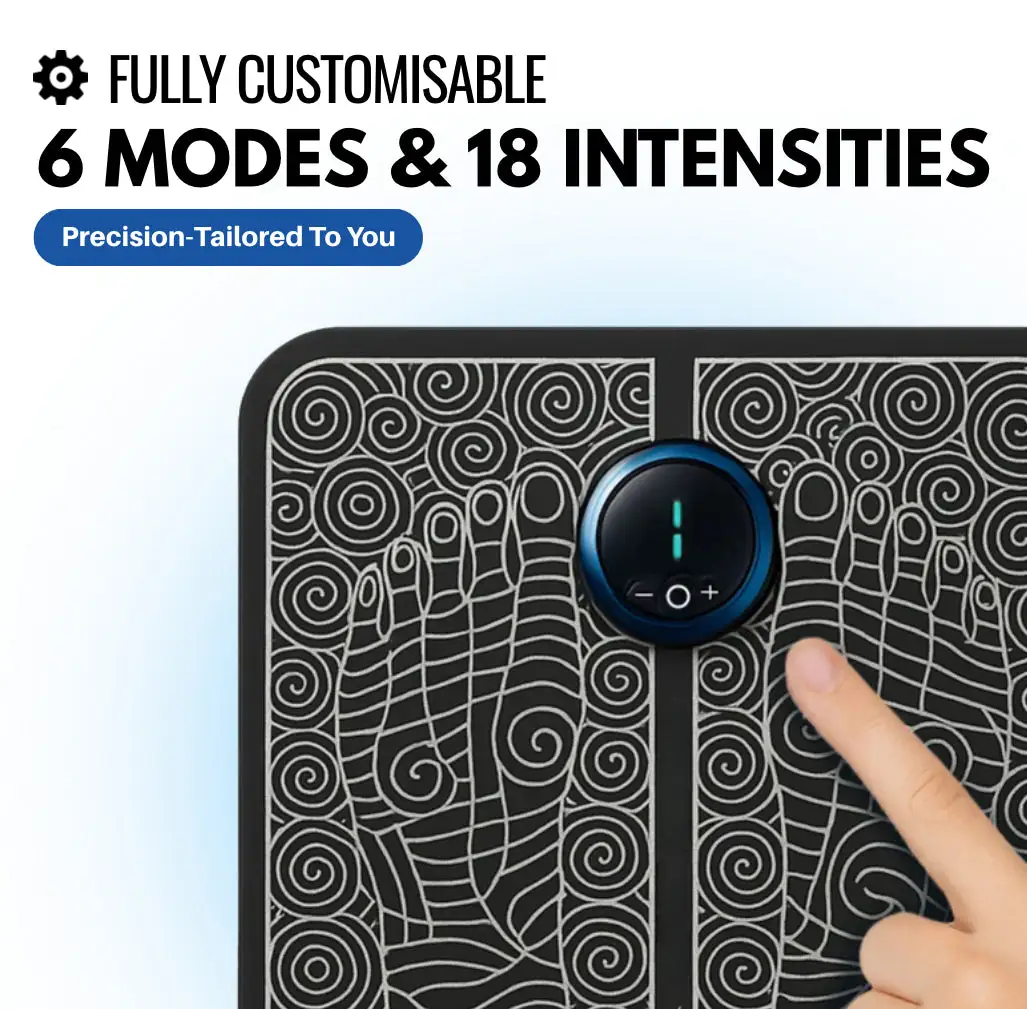 Harnessing advanced Electric Muscle Stimulation (EMS) technology, this innovative foot therapy device sends gentle pulses to stimulate muscles and acupressure points. It enhances blood circulation, reduces swelling, and alleviates discomfort. Say goodbye to tired, aching feet and embrace a new level of rejuvenation.
