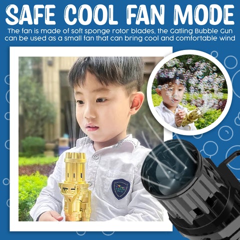 Our Mega Fun Bubble Gun adopts Gatling’s appearance structure that makes your kids play for hours! With a super cool design, the shape is an 8-hole air balloon that can burst hundreds of balloons per minute. It has immersion use for cleaner and convenient use, no bubble concentrate leakage.