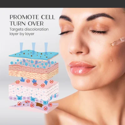 - Take 2-3 drops of serum and evenly apply a thin layer on the skin or spots areas.