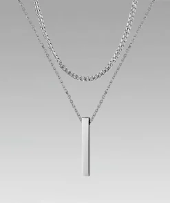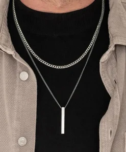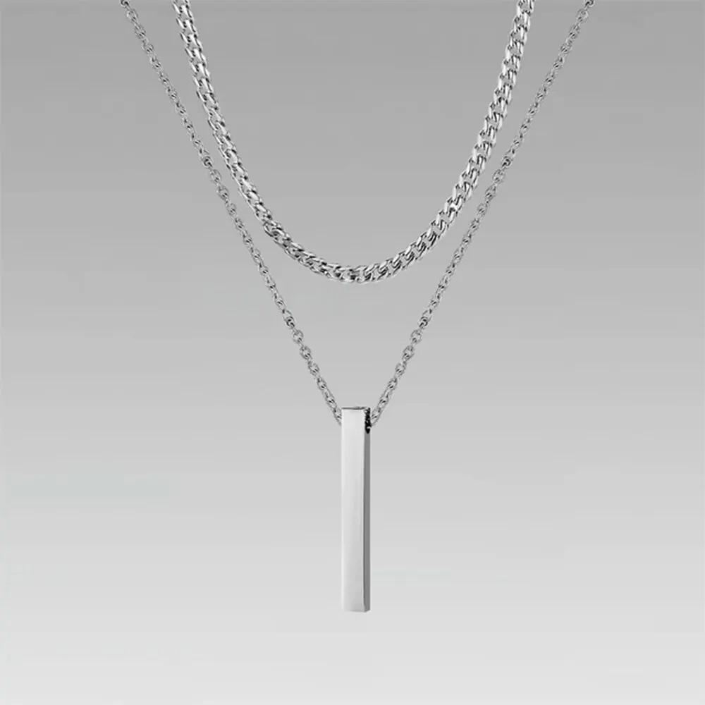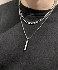 Men 3D Vertical Necklace Geometry Stainless Steel Cuban Necklace Temperament Cool Vertical Pendant Necklace