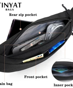 TINYAT Men Waist Bag Pack Purse Casual Large Phone Belt Bag Pouch Women’s Canvas Travel Phone Bag Fanny Banana Bag Hip 4 Pockets