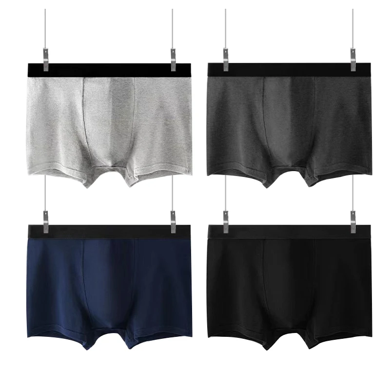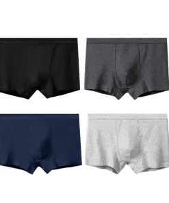 4pcs Men’s Briefs Mens Sexy Flat angle Underwear Men’s Panties Cow Milk Silk Breathable Elastic Large Size Male Underpants