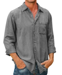 - Name: Mens Denim Long Sleeve Button Down Shirt