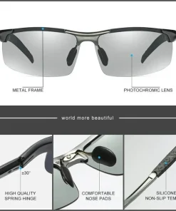 Men’s Photochromic Sunglasses with Anti-glare Polarized Lens, Aluminum Rimless Photochromic Sunglasses Men Polarized Day Night Driving Glasses Chameleon Anti-Glare gafas de sol hombre has the following product features: