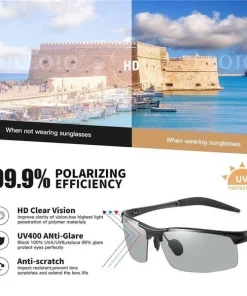 - Package includes: 1 x Men’s Photochromic Sunglasses with Anti-glare Polarized Lens