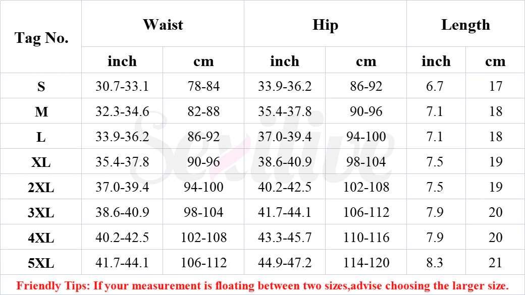- Size chart: S,M,L,XL,2XL,3XL,4XL,5XL