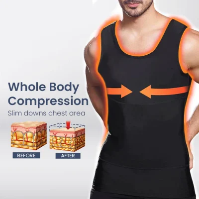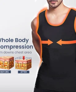 This compression tank top creates sensations of heat without other energy sources like electricity. Based on Infrared heating, magnetic therapy, this heat trapping polymer fabric provides users with multi-directional chest compression and acupressure stimulation. It helps to effectively stimulate the body’s blood and lymph circulation to relieve Gynecomastia and reduce fluid buildup and cellulite in the body.