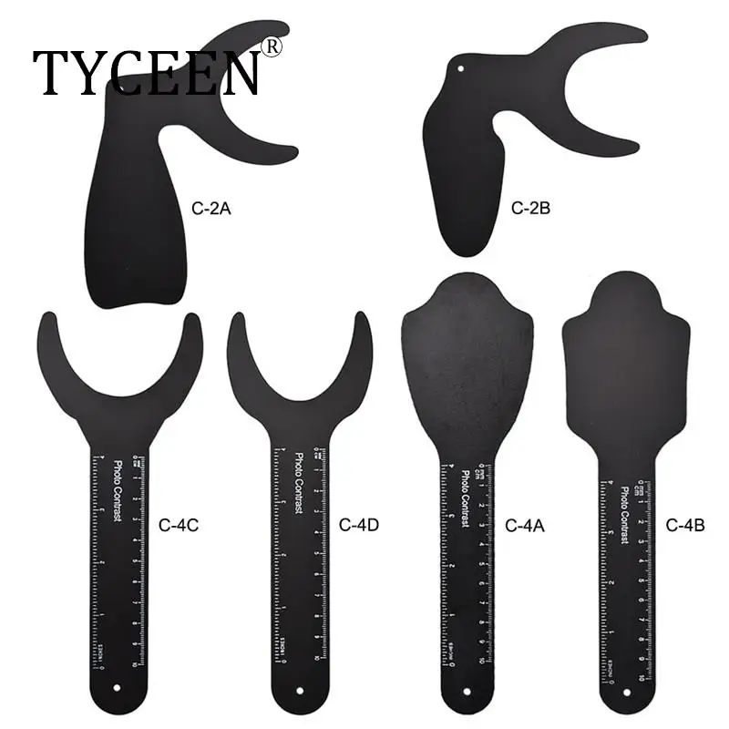 6pcs Dental Orthodontic Black Background Photo Image Contrast Board Oral Cheek Plate with Scale Mark Autoclavable Dentist Tools
