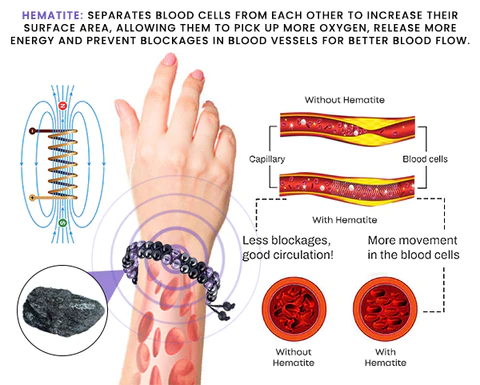 Hematite are believed to be the best crystal for strengthening, and regulating blood flow, and aids in the treatment of blood issues such as blockage. It enhances blood function and tissue regeneration. This stone helps the swollen part of the body be drained.