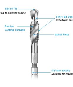 It’s highly recommended that the combination drill and tap bit is used on a tapping machine.
