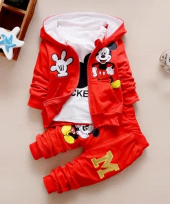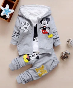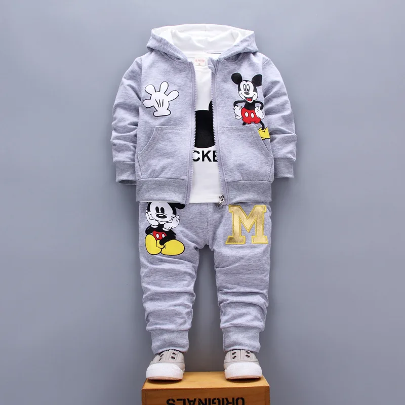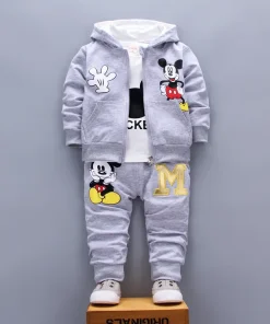 Disney Cartoon Printed Mickey Mouse Clothing Set for Kids 3PCS (Jacket+Shirt+Pants) Autumn Casual Hooded Oufits