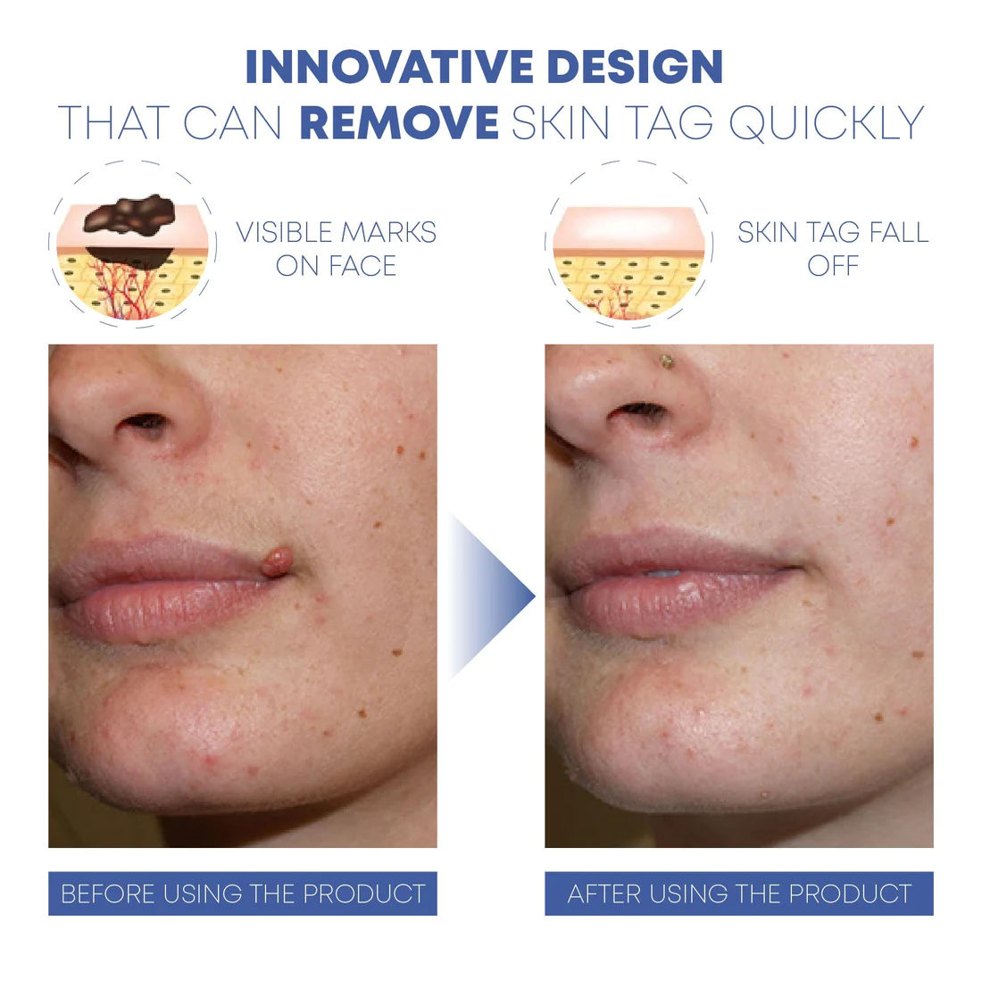 - Place the remover over the skin tag then push the button to release the band.