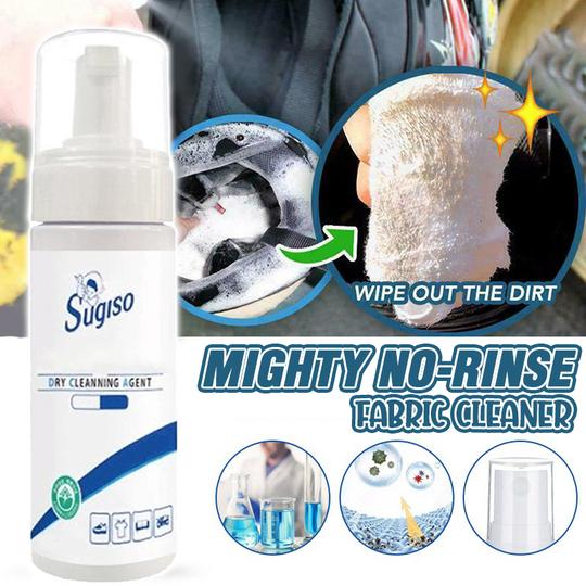 Mighty No-Rinse Fabric Cleaner is a NATURAL-BASED LIQUID FORMULA that is FAST ACTING and DEEP CLEANS without leaving behind a GREASY, STICKY, or Family RESIDUE. GUARANTEED to ELIMINATE TOUGH STAINS and ODORS in just 45 SECONDS.